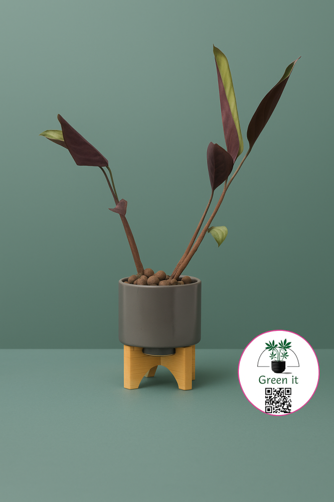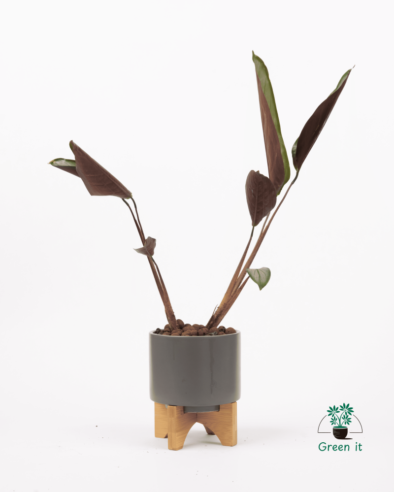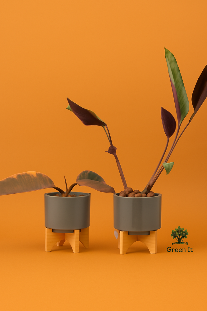 وعاء سراميك بقاعده خشبيه ( بوهيمي)