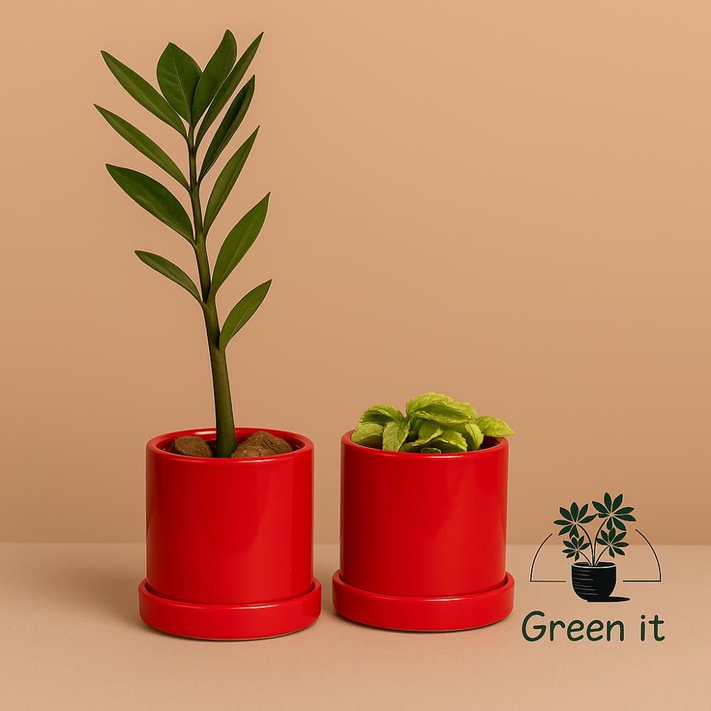 نبتة الزاميا (Zamioculcas zamiifolia) + نبتة الزعتر البري (Wild Thyme – Thymus serpyllum)