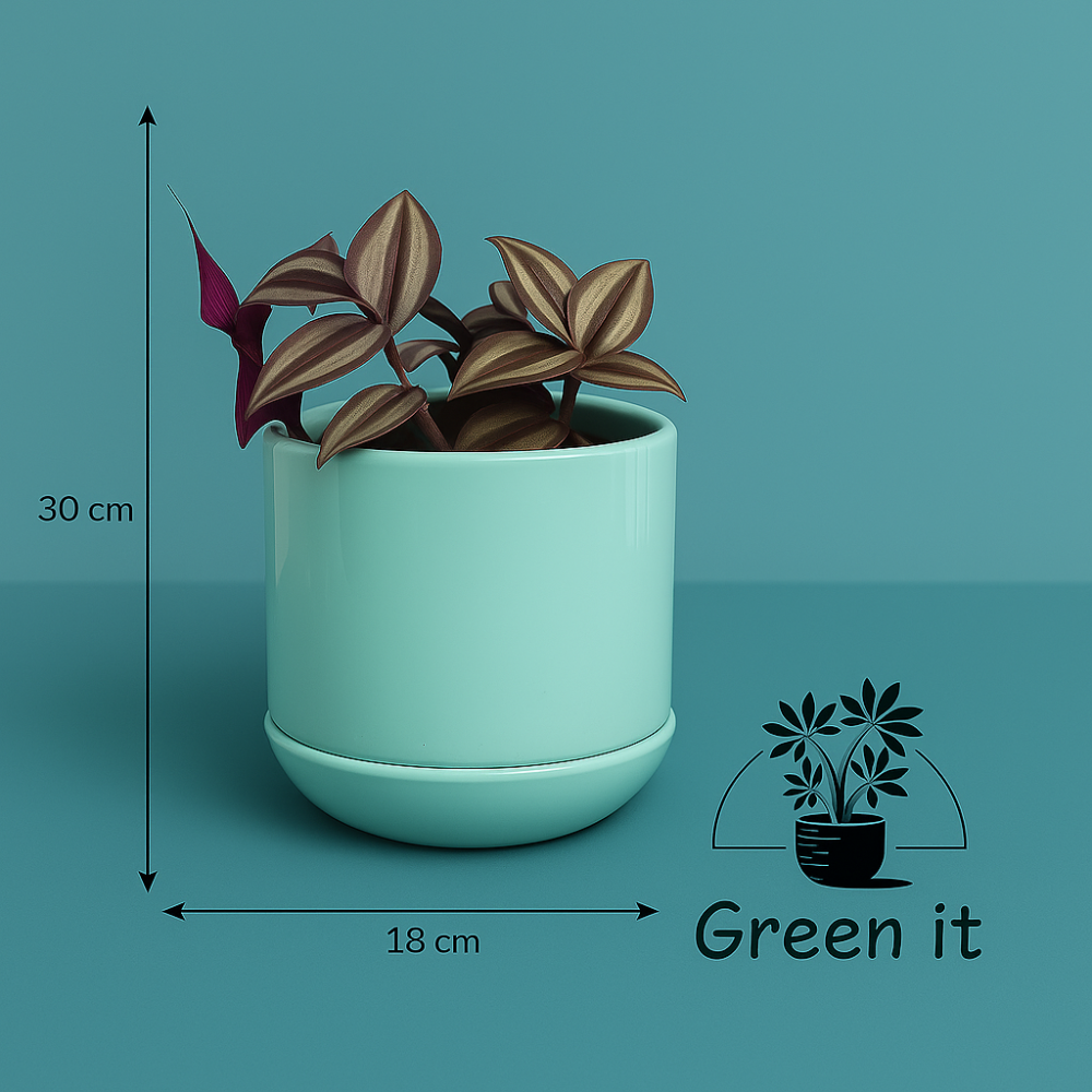 أضف لمسة من الجمال الطبيعي والهدوء إلى مساحتك مع نبتة المكحلة ذات الأوراق المخططة بالأرجواني والفضي، المعروفة بجمالها وسهولة العناية بها. تأتيك هذه النبتة مزروعة في أصيص خزفي بلون تركواز راقٍ يضفي لمسة عصرية تناسب المكاتب، المداخل، أو أي ركن في منزلك.