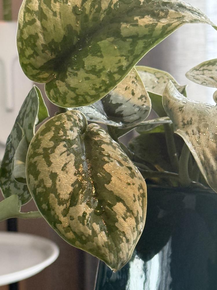 نبتة داخلية جميلة تتميز بأوراقها الخضراء المزخرفة بلمسات فضية، تضيف لمسة عصرية وأنيقة لأي مكان.